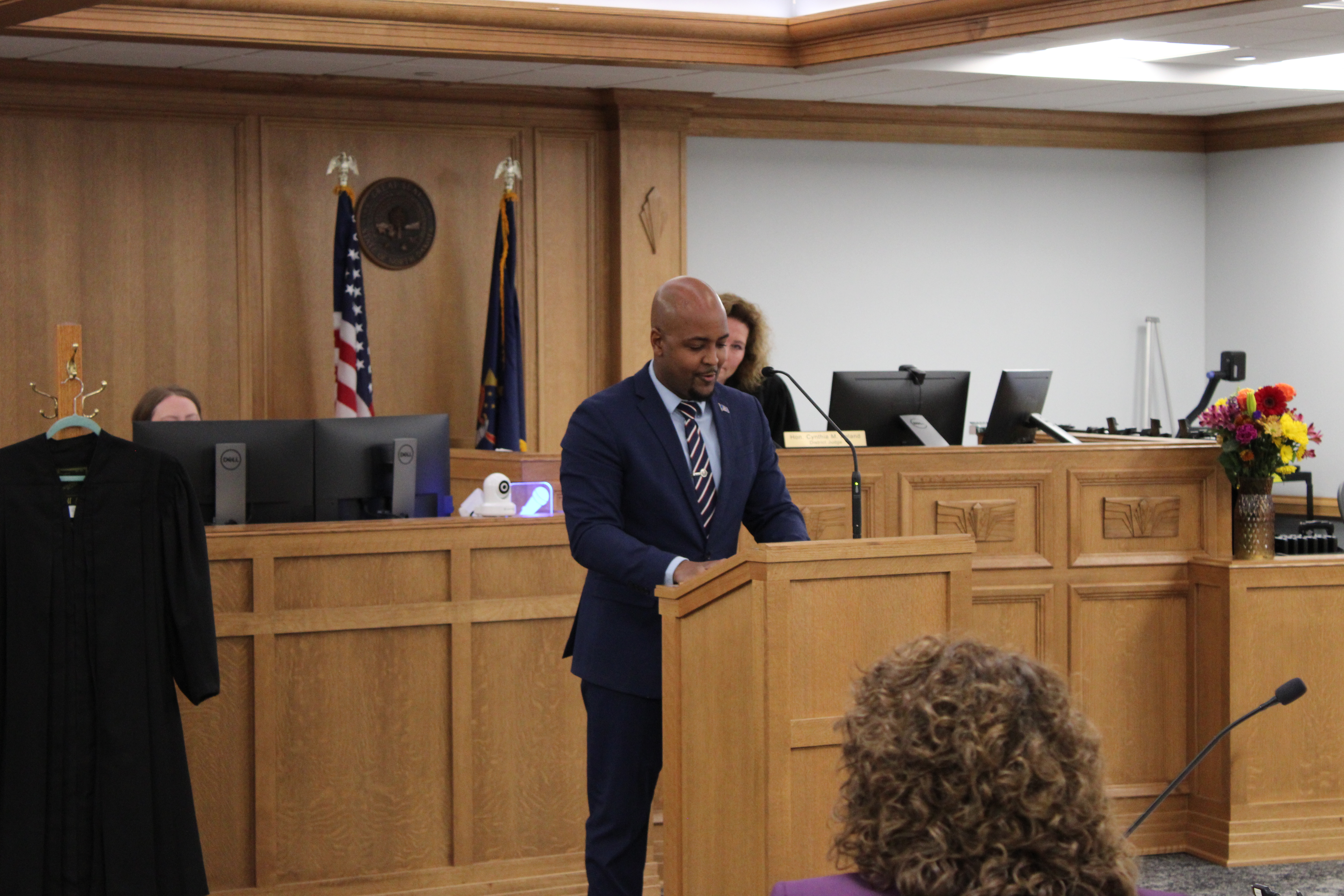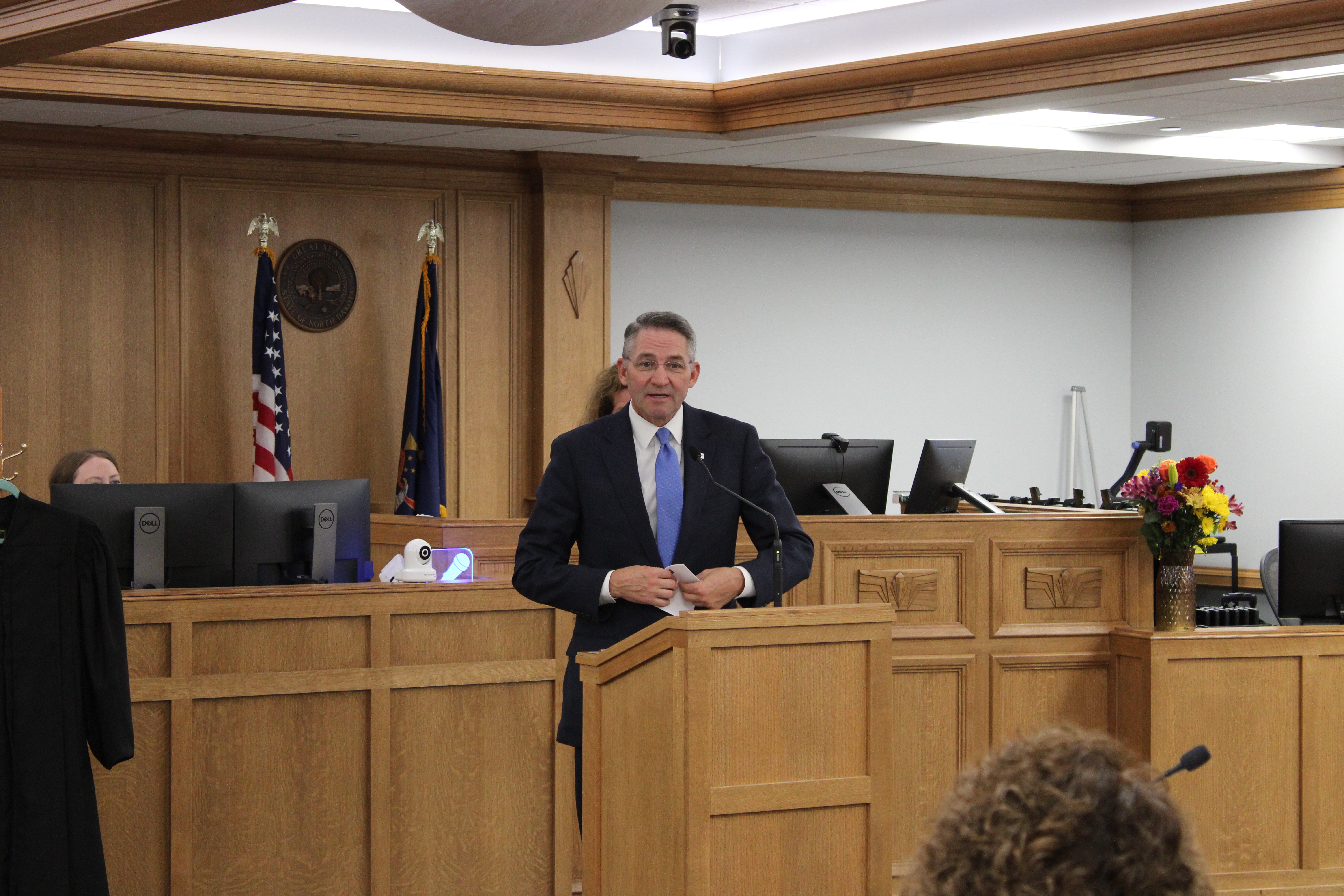 Attorney General Drew Wrigley spoke of Judge Spahr's experience working in the Attorney General's office.